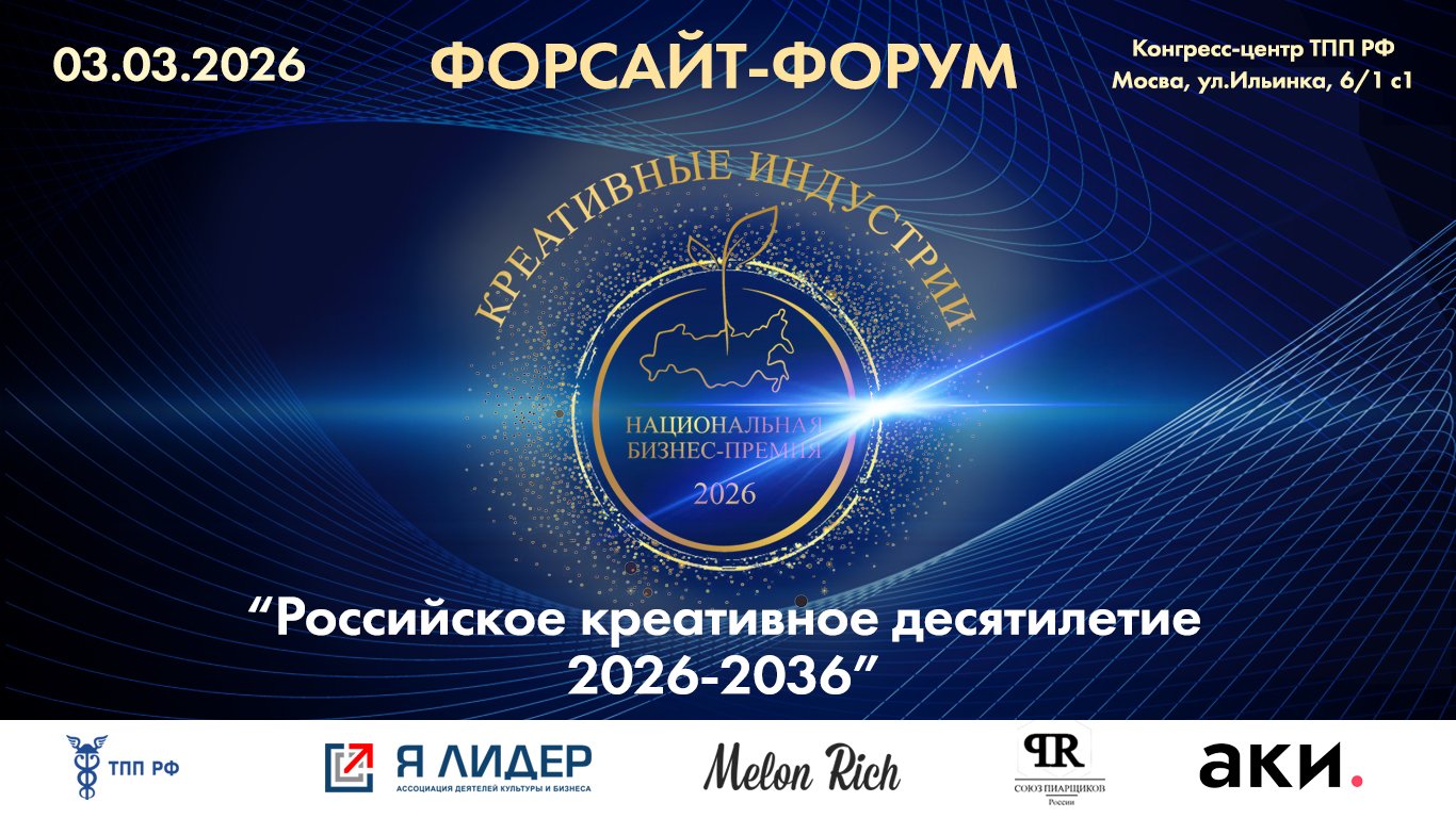 По поручению председателя Правительства Российской Федерации Михаила Мишустина к середине февраля 2026 года будет подготовлена Стратегия по развитию креативной экономики на период до 2036 года. В целях всестороннего содействия реализации данного программного документа 3 марта 2026 года в Конгресс-центре Торгово-промышленной Палаты Российской Федерации (г. Москва, ул. Ильинка, д.6/1, стр.1) пройдёт Форсайт-форум «Российское креативное десятилетие 2026-2036».