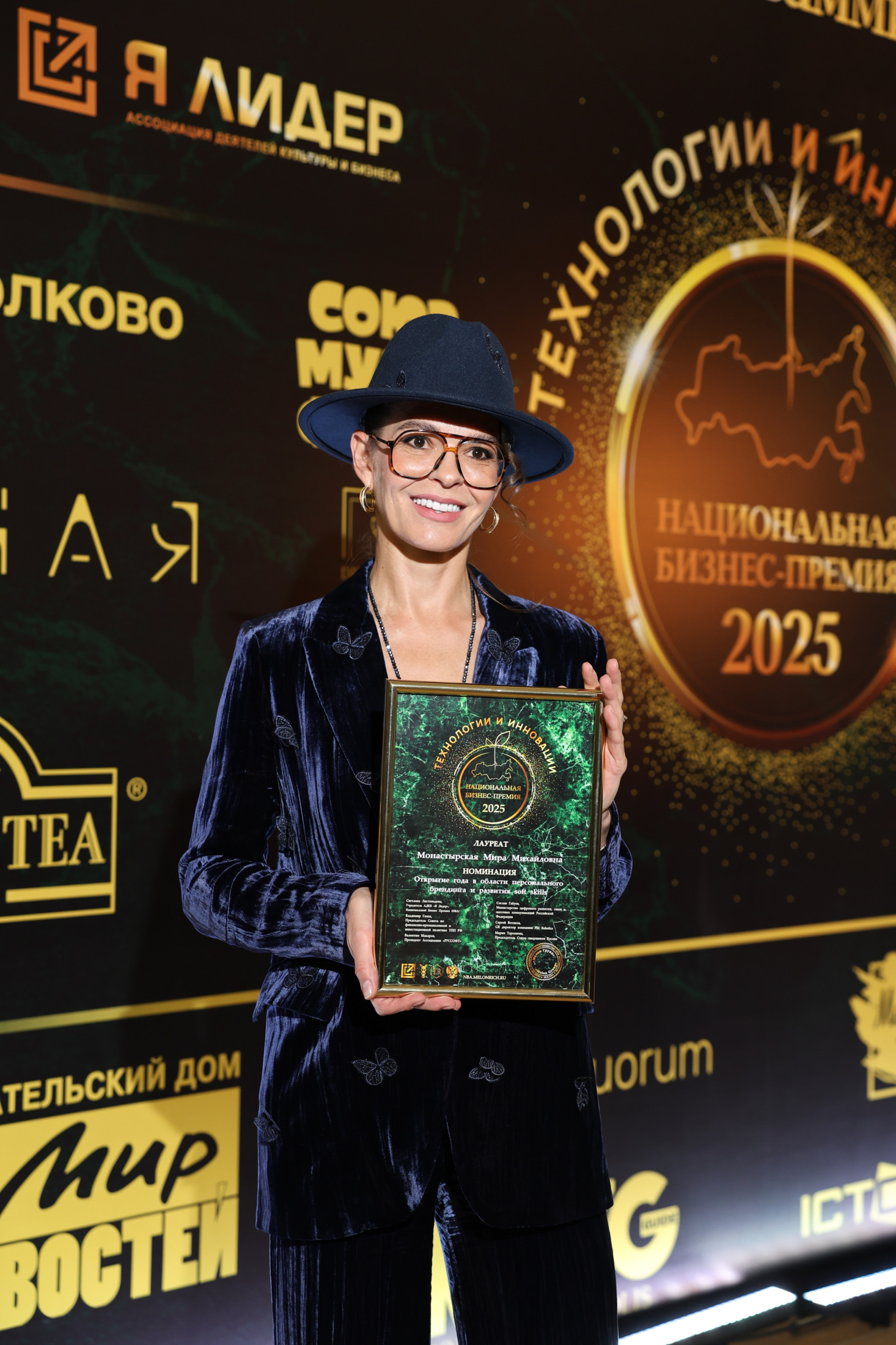 Мира Монастырская получила награду в номинации «Инновационный продукт для личностного роста и бизнес-развития» за создание нейропособия «Королева нового мира» – аналитического методического инструмента, где искусственный интеллект работает как способ визуального мышления. Ее система «МИРА» – это Молодость, Имидж, Раскрутка, Автобиография, а драйвером в ней выступает сам человек как творец.